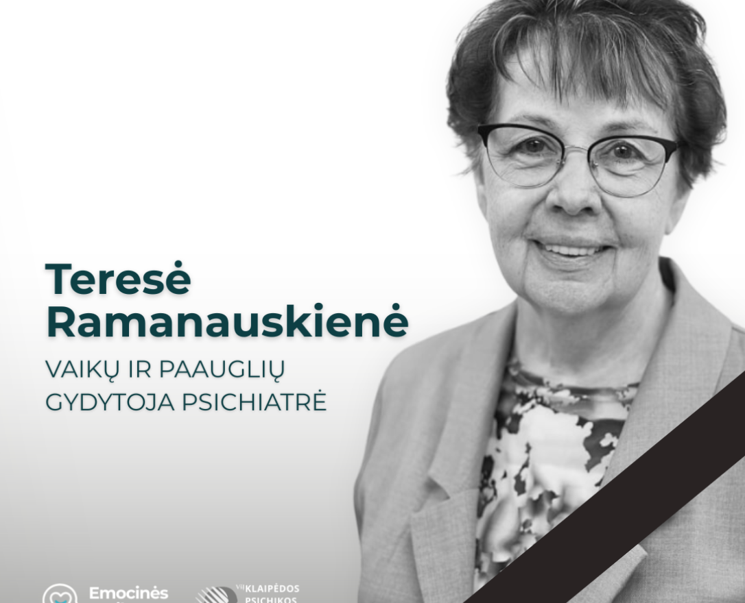 „Su giliu liūdesiu pranešame, kad 2026 03 24 mus paliko vaikų ir paauglių gydytoja psichiatrė Teresė Ramanauskienė.