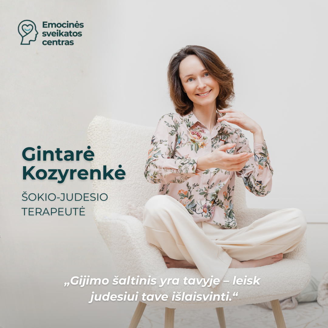 Prie mūsų specialistų komandos prisijungė šokio–judesio terapeutė Gintarė Kozyrenkė.