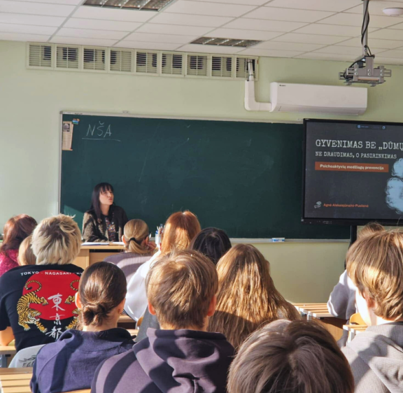 Vakar dieną mūsų centro medicinos psichologė Agnė Aleksiejūnaitė-Puslienė lankėsi Klaipėdos Ąžuolyno gimnazijoje, kur vedė praktinę psichoaktyvių medžiagų prevencijos veiklą mokiniams.